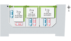 3区画中2区画が角地の開放感あふれるランドプランです。