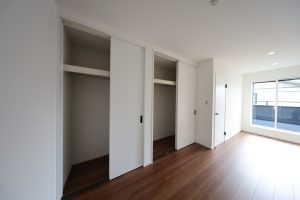 7.2帖の主寝室には2つのクローゼットを設け、ご夫婦それぞれのアイテムを分けて管理できるようにしています。