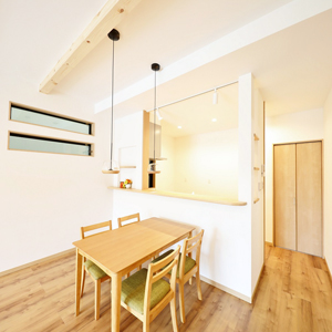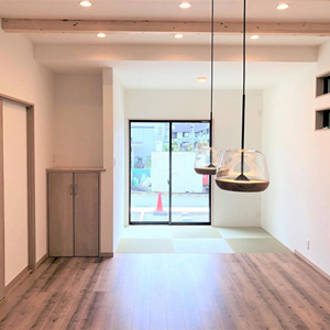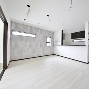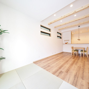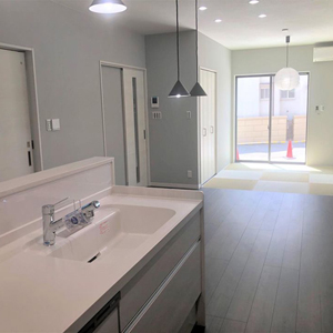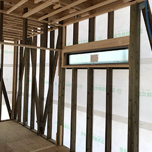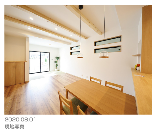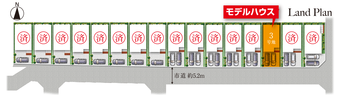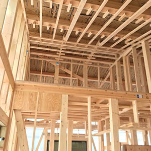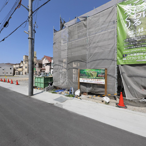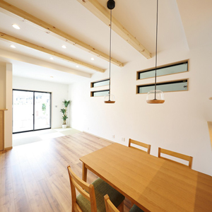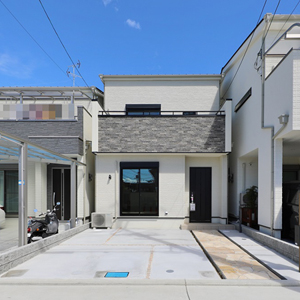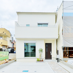建物は、当社がこだわる「緑の柱」や「吹付断熱」などの素材や装備を採用。自社の大工による直営施工で、ご家族が「幸せ」を感じる街と家を創造します。