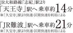 また、大阪「天王寺」駅へ約14分と快適な通勤・通学アクセスも確保。さらに日々の買物が便利な商業施設が充実しており、ご家族みんなが毎日の生活にゆとりを感じられます。