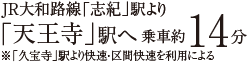 JR大和路線「志紀」駅まで徒歩10分、そこから「天王寺」駅まで乗車約14分と、都心部のアクセスに便利な立地。優れた利便性による快適さを実感していただけます。