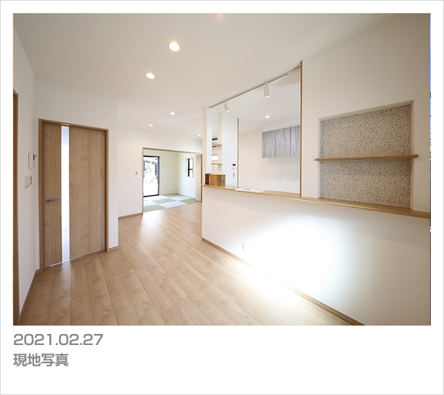 建物は、当社がこだわる「緑の柱」や「吹付断熱」などの素材や装備を採用。