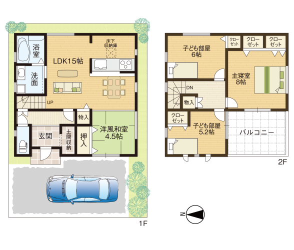 玄関に土間収納、キッチンの床下収納や各部屋の収納と、たくさんお片付けスペースを設けました。家中きっちり片付けられる仕様です。
