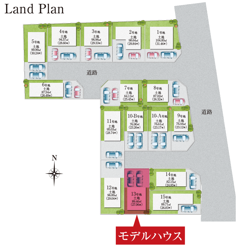 | 敷地面積 | 76.61㎡(23.17坪)~104.00㎡(31.46坪) |