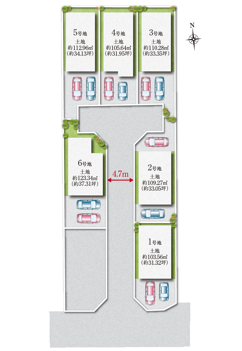 土地面積 約105.64㎡(約31.95坪)~約112.96㎡(約34.13坪)