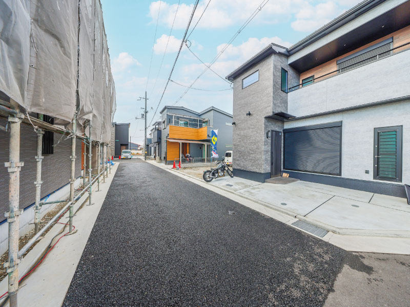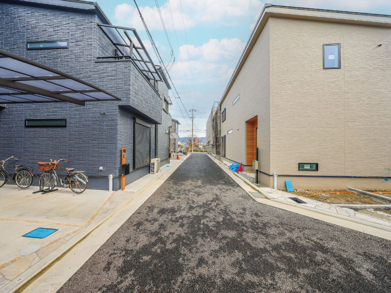 車の進入口を1ヶ所に限定した通り抜けできない街区設計など、永住を見据えた安心のまちづくりが9家族の暮らしを照らします。