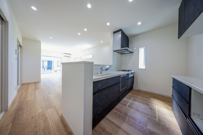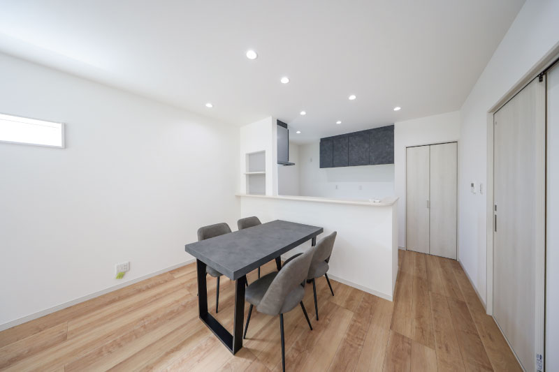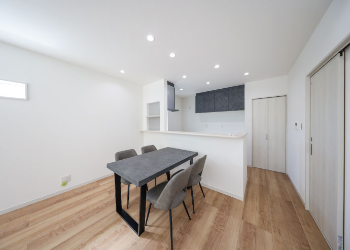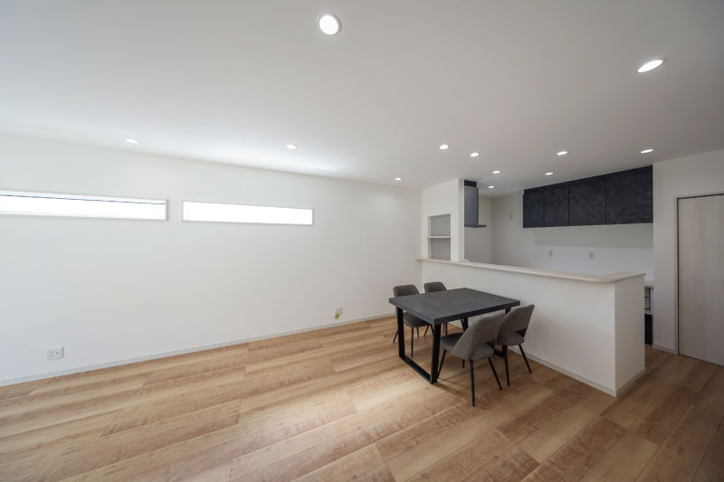 角地を活かし、3面採光を実現した明るく快適なLDK。開放感溢れる空間でゆったりと家族の時間を過ごせます。