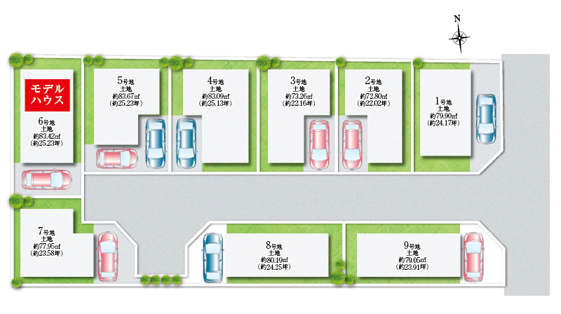 | 土地面積 | 72.80㎡(22.02坪)~83.67㎡(25.31坪) |