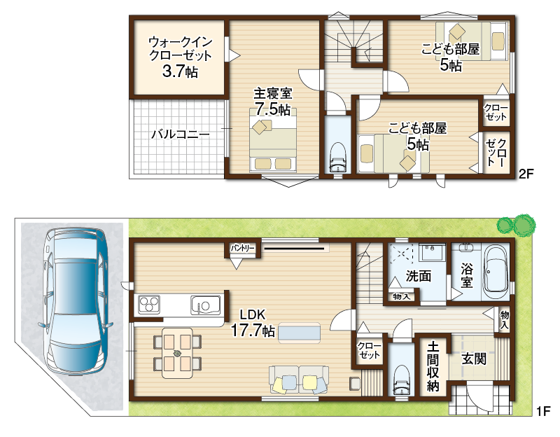 全邸駐車スペースを確保した敷地が嬉しいランドプラン