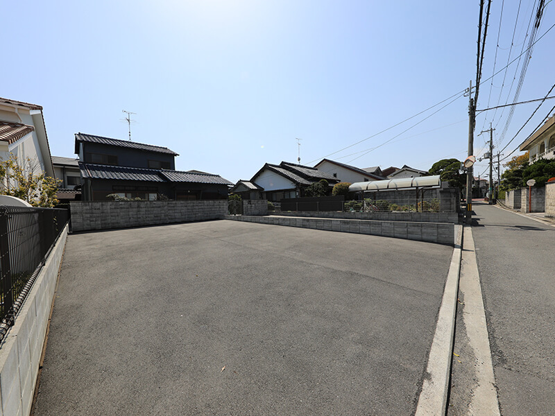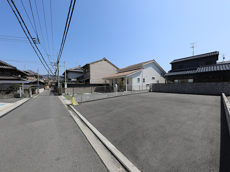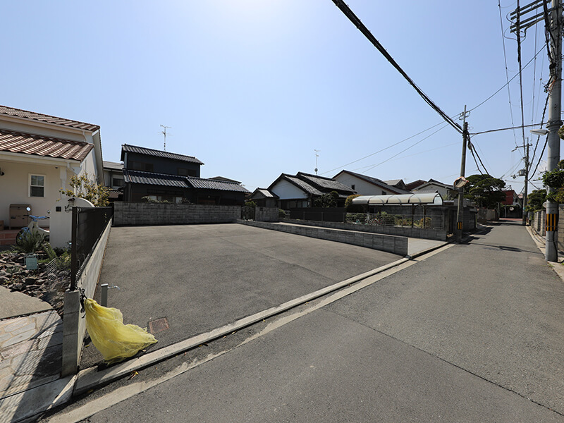一戸建てが立ち並ぶ、閑静な住宅街です。周辺には大きなグラウンドや自然豊かな緑地があるほか、少し南西へ行くと大型ショッピングモール「アリオ八尾」もあり、大人から子どもまで家族で出かける場所が多いエリアです。