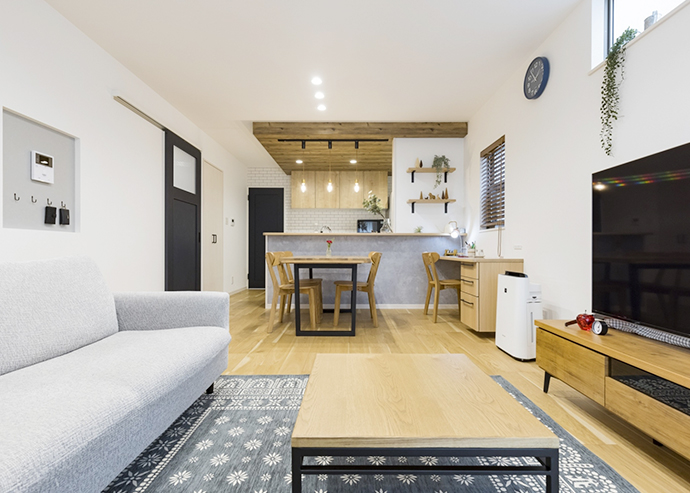 土間収納をはじめ、リビング収納や洗面収納など適材適所に設けた収納で掃除がしやすくスッキリ片付く設計です。