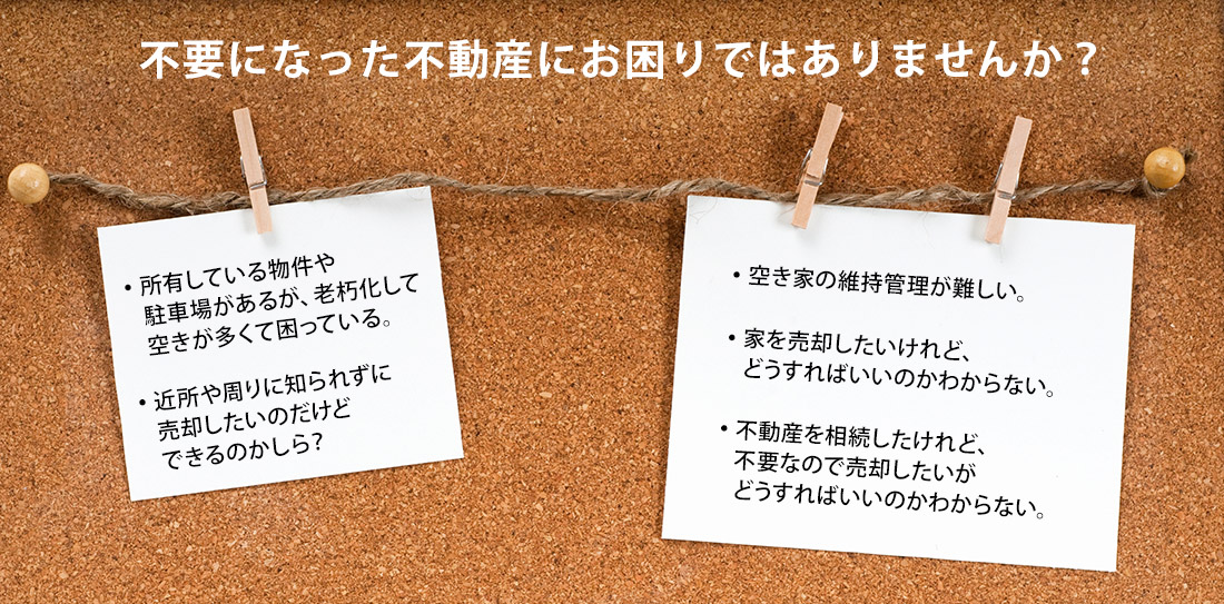 当社では、お客様のご希望スケジュールに合わせたスピーディーな対応を心がけ、不動産のプロフェッショナルの目で「売りたい不動産」を適正・的確に査定し、当社が現金買取りいたします。老朽化した一戸建住宅・空き家・収益物件・社宅・寮・土地など、あらゆる不動産に対応。不動産売却に関する様々な手続きや疑問など、何でもお気軽にご相談ください。